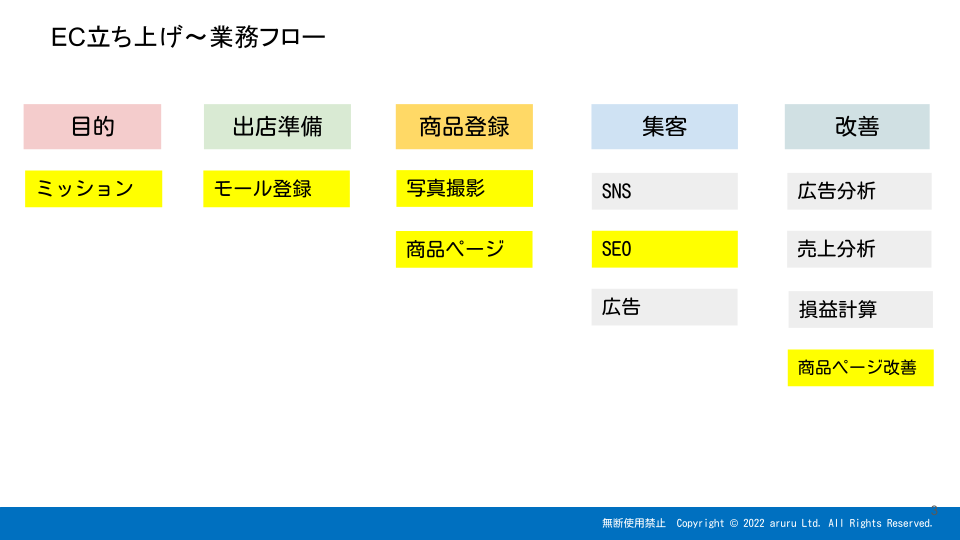 EC無料セミナー part2(商品登録) 2025 11/04 講座 2025年11月4日 EC立ち上げ~業務フロー図 目次商品登録 このコンテンツは講座会員限定です。ログインしてください。 講座 よかったらシェアしてね! URLをコピーしました! URLをコピーしました! EC無料セミナーpart1(目的・出店準備) EC売上アップ講座 第2回 ECサイト作成① 原稿作成 この記事を書いた人 岩永 圭一 熊本を拠点に、中小企業・地域事業者のECサイト運営を支援しています。 楽天・Shopify・WordPressなどの構築から、SEO・広告運用・分析まで一貫してサポート。 「専門用語よりも、現場の成果」をモットーに、 実際の店舗・農園・工房と一緒に“売れる仕組み”をつくる活動を行っています。 関連記事 EC売上アップ講座 第2回 ECサイト作成① 原稿作成 2025年11月9日 EC無料セミナーpart1(目的・出店準備) 2025年11月3日 EC売上アップ講座 第1回 競合調査と商品戦略 2025年11月3日